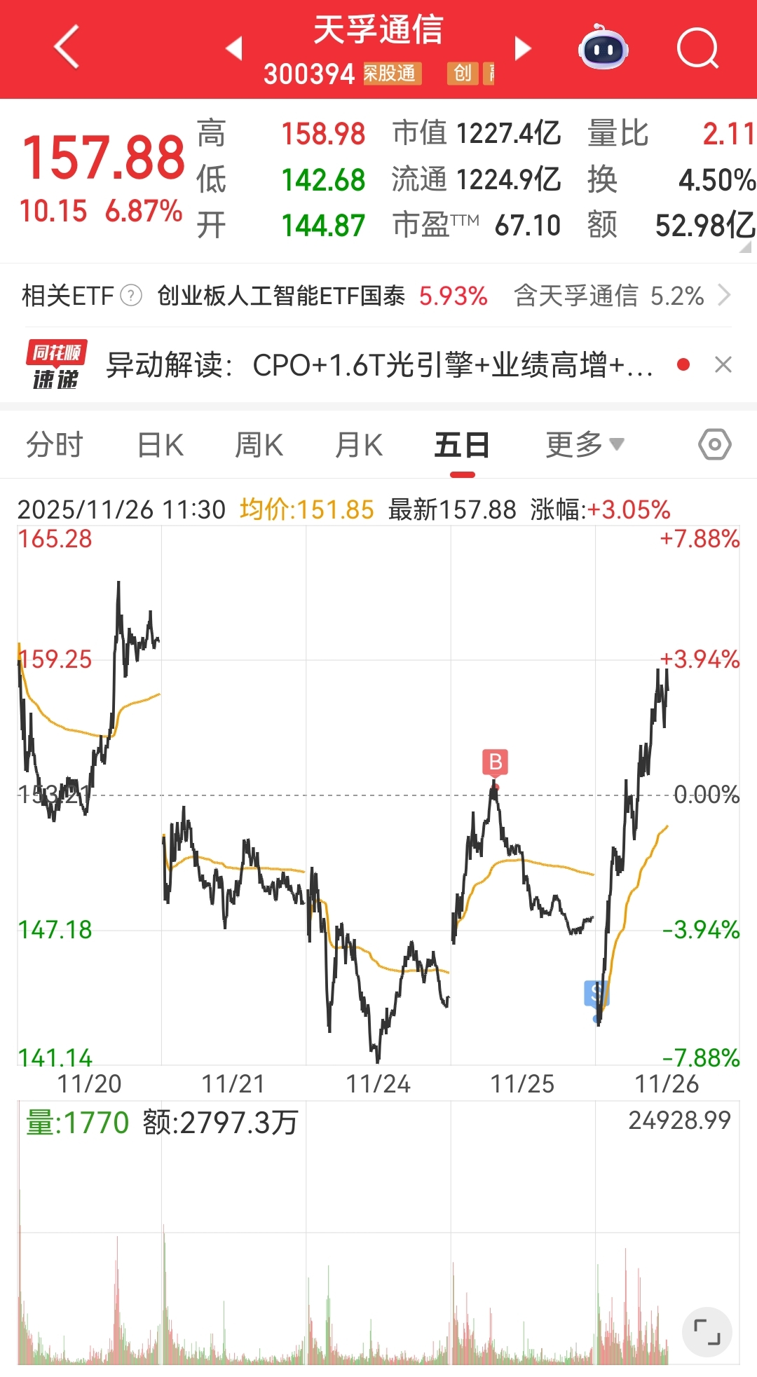 $天孚通信(SZ300394)$ 我10个点啊