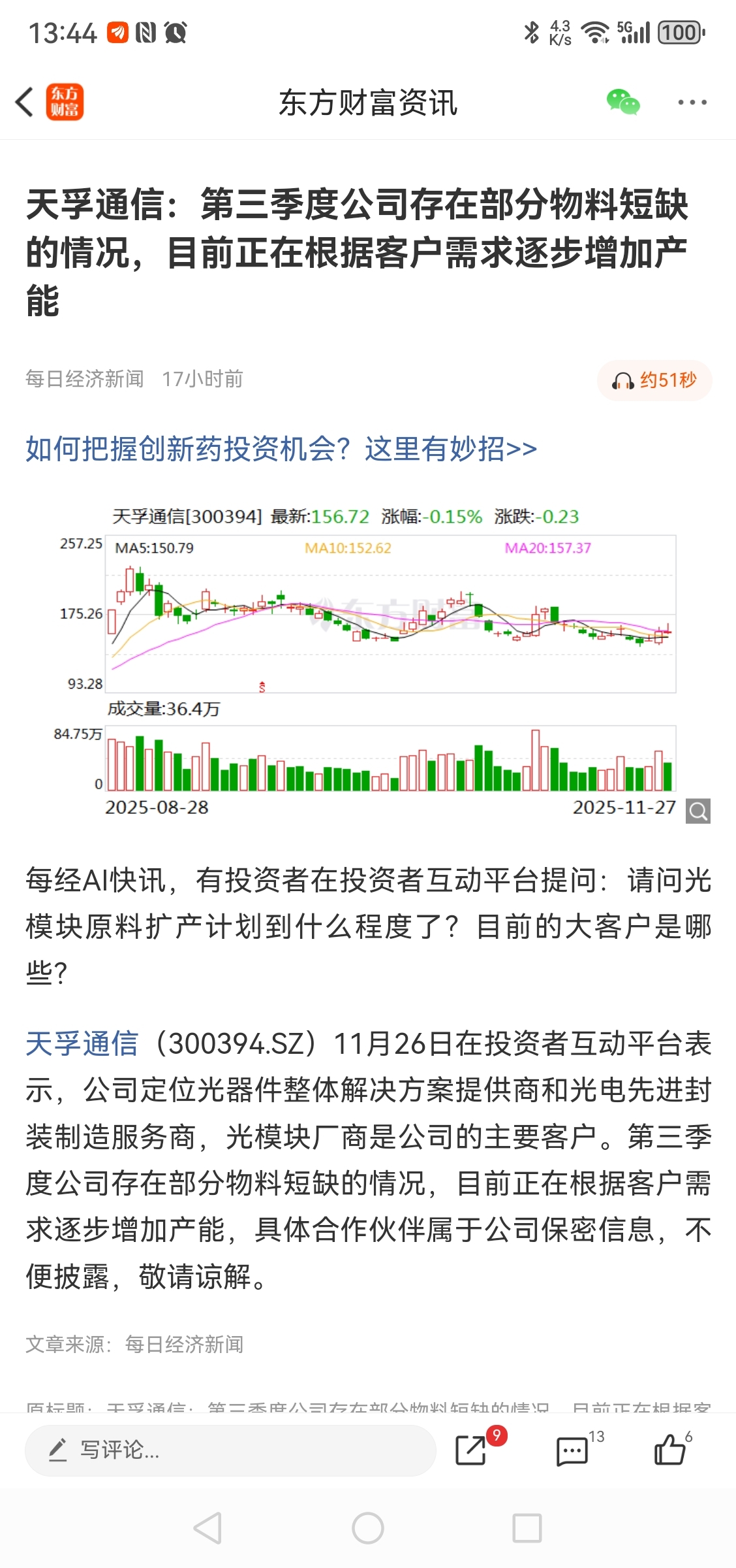 $天孚通信(SZ300394)$ 看懂这个就OK,三季度是部分物料产能不足,四季度开始补上。