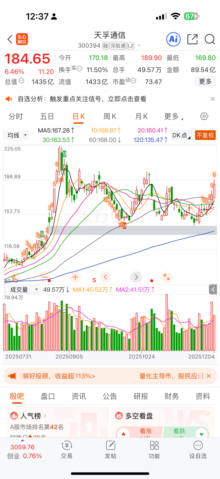 $天孚通信(SZ300394)$ 好久没出现神奇九转了!!今天才第六转!! 还能涨三天!!上次第七转都是20%涨停~