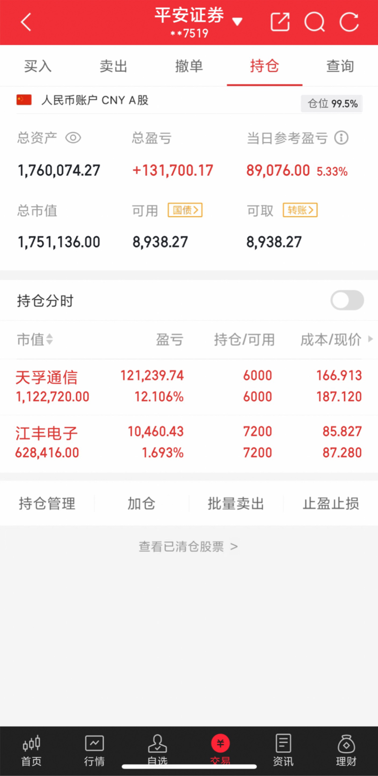 【60W炒股之旅|第29天】今日实盘操作简记:•继续持有:江丰电子天孚通信卖出: