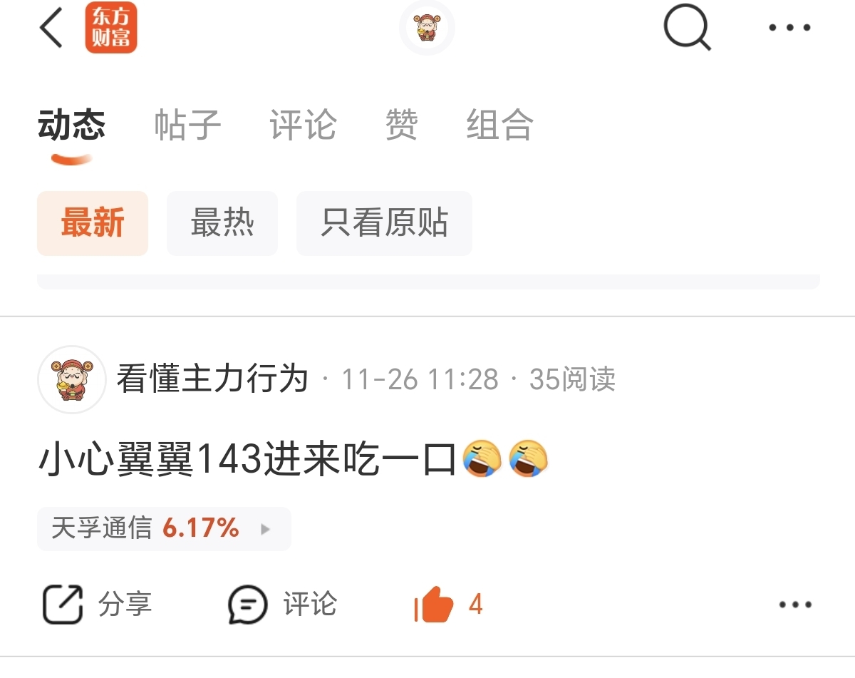 温馨提示: 1.根据《证券法》规定,禁止编造、传播虚假信息或者误导性信息,扰乱证券市场;2.用户在本社区发表的所有资料、言论等仅代表个人观点,与本网站立场无关,不对您构成任何投资建议。用户应基于自己的独立判断,自行决定证券投资并承担相应风险。《东方财富社区管理规定》