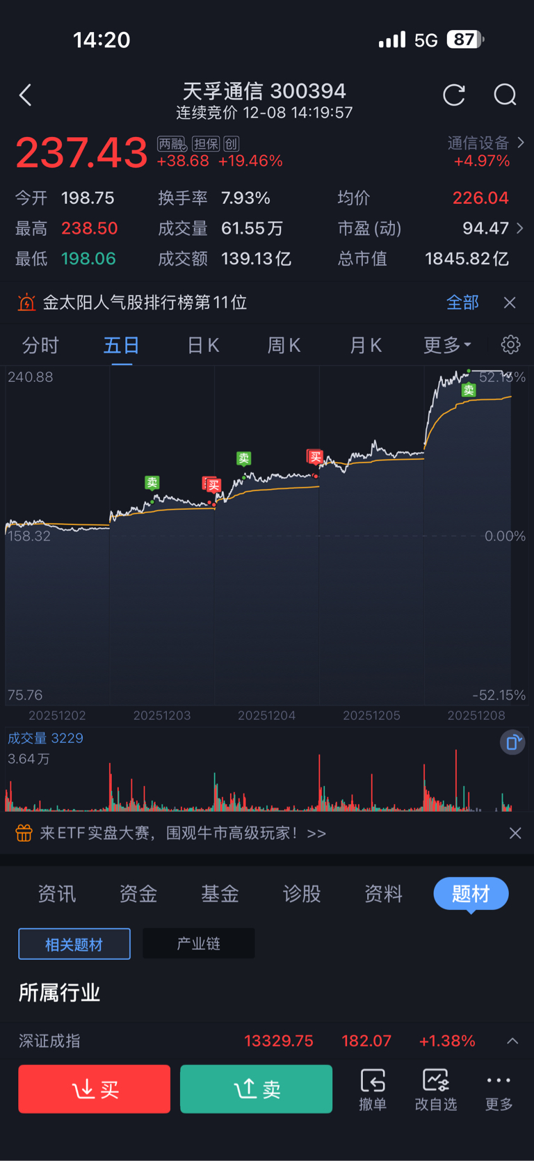 $天孚通信(SZ300394)$ 知道你可以,这几天让我赚了40几个点。