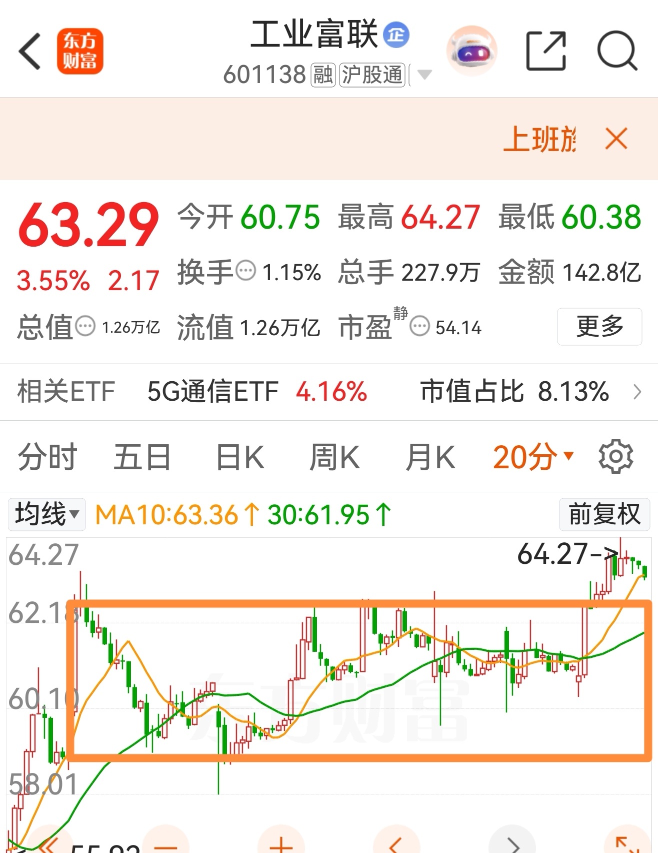 工业富联20分钟会回测方框箱体,看明天会不会进入。进入就要重新突破!