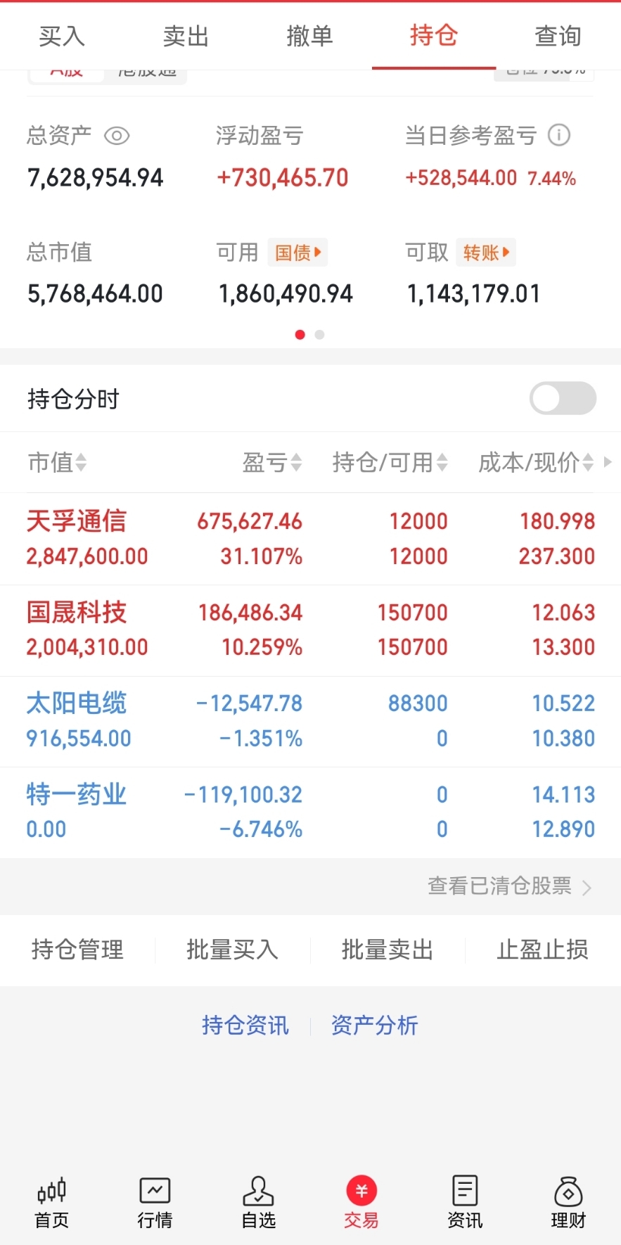仓位:$天孚通信(SZ300394)$ $国晟科技(SH603778)$ $太阳电缆(SZ002300)$