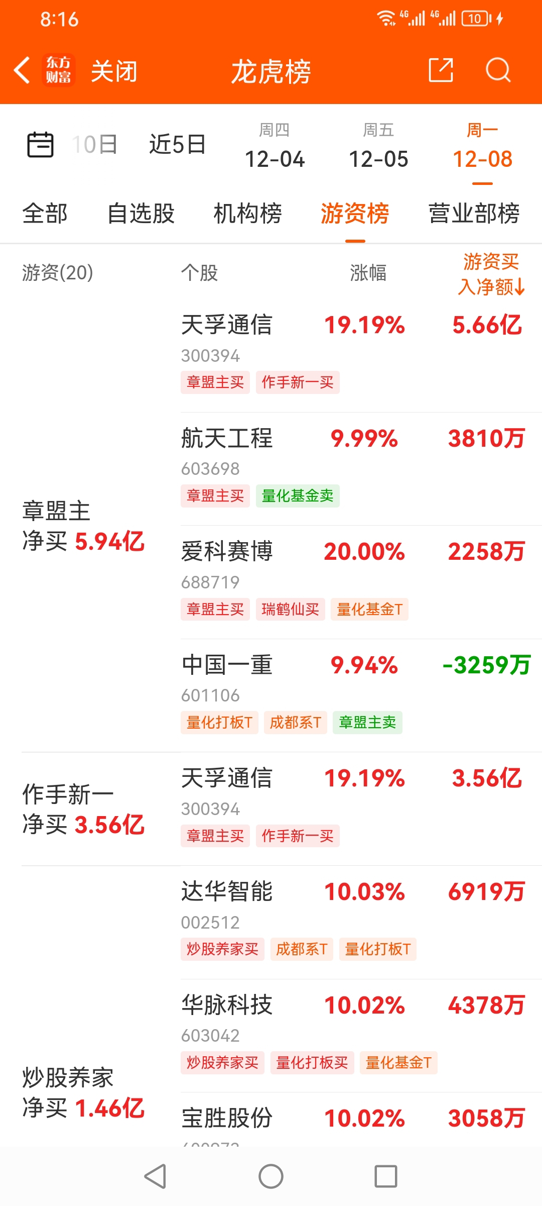 游资军哥,今天买进股票 涨停板$天孚通信$航天工程(SH603698)中国一重601106