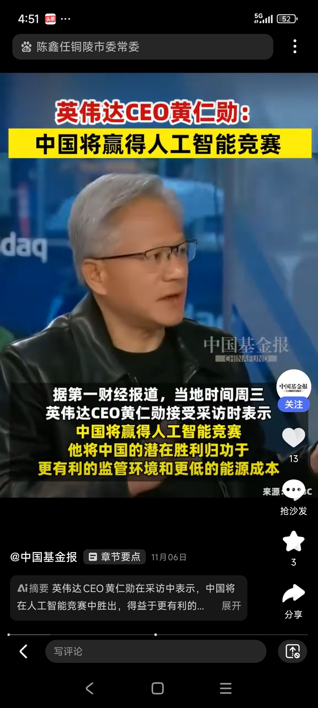 黄仁勋表示china赢得ai竞赛,天孚美国成为供应链独苗