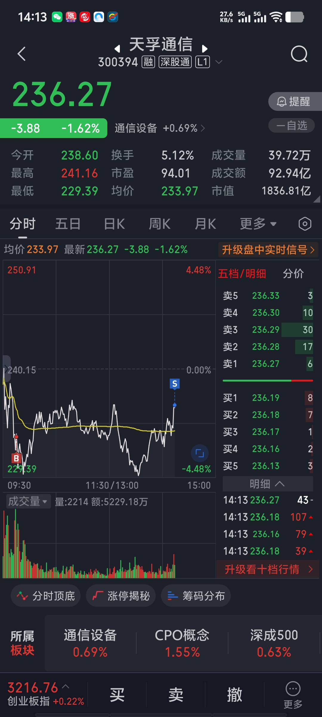 $天孚通信(SZ300394)$ 我又来了!还是我!看看今天的操作给我打几分!没有别的意思只是通过这个股吧交一些有价值的股友!