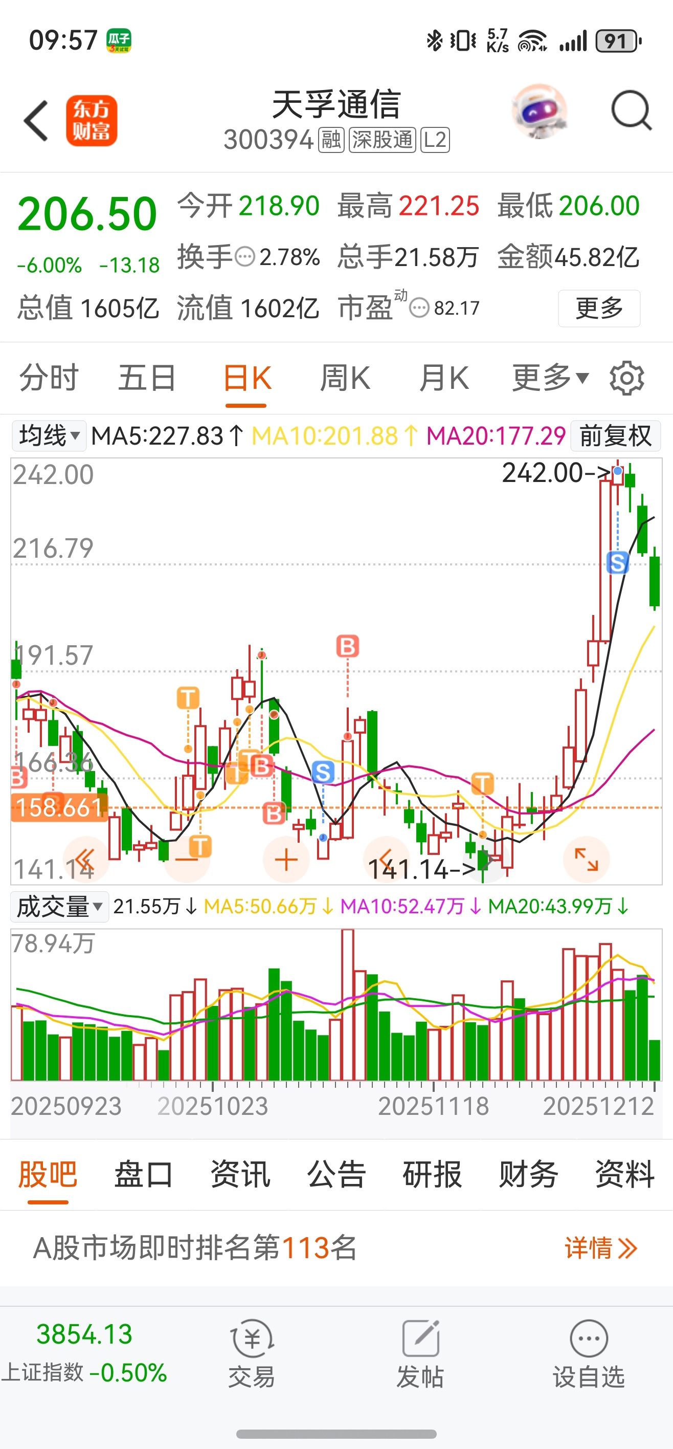 $天孚通信(SZ300394)$ 牛逼,20个点跌没了。