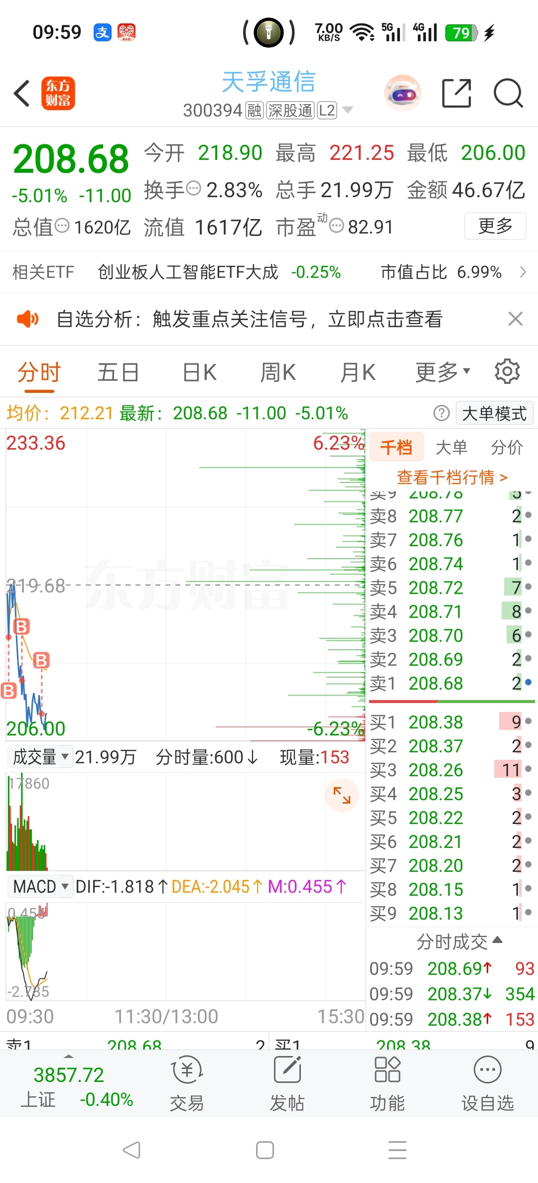 $天孚通信(SZ300394)$ 3天跌十几个点,新易盛和中际旭创没咋跌,加仓做t