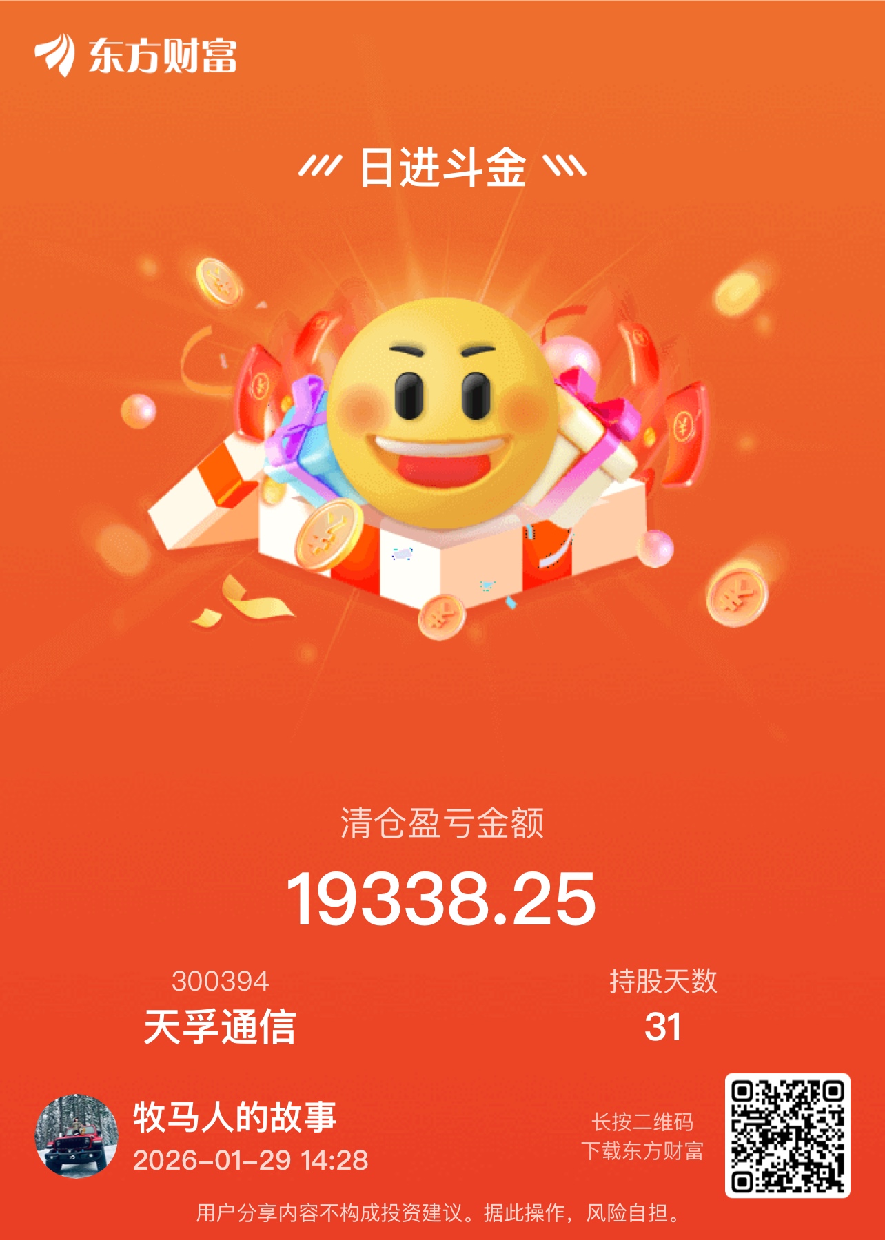 温馨提示: 1.根据《证券法》规定,禁止编造、传播虚假信息或者误导性信息,扰乱证券市场;2.用户在本社区发表的所有资料、言论等仅代表个人观点,与本网站立场无关,不对您构成任何投资建议。用户应基于自己的独立判断,自行决定证券投资并承担相应风险。《东方财富社区管理规定》