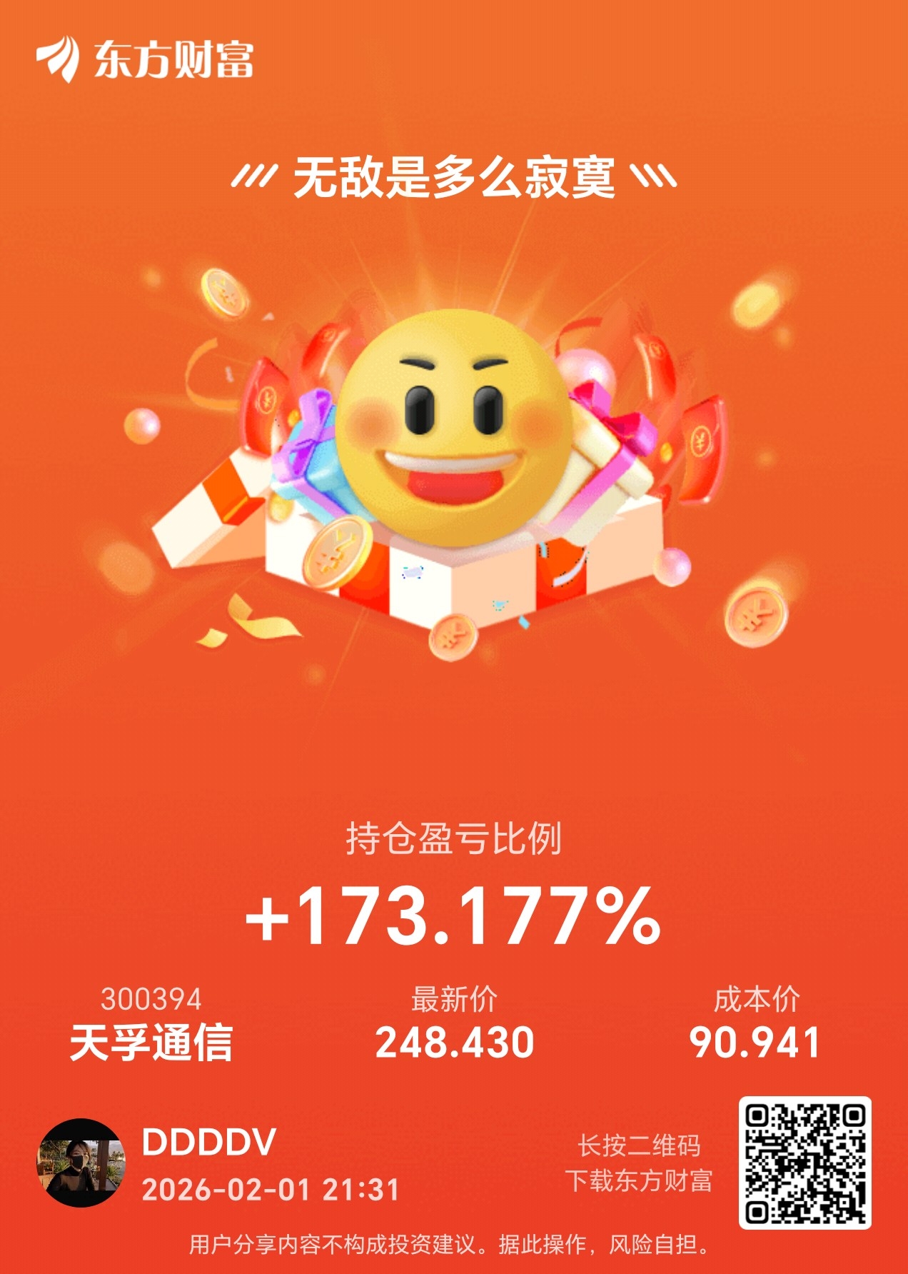 温馨提示: 1.根据《证券法》规定,禁止编造、传播虚假信息或者误导性信息,扰乱证券市场;2.用户在本社区发表的所有资料、言论等仅代表个人观点,与本网站立场无关,不对您构成任何投资建议。用户应基于自己的独立判断,自行决定证券投资并承担相应风险。《东方财富社区管理规定》