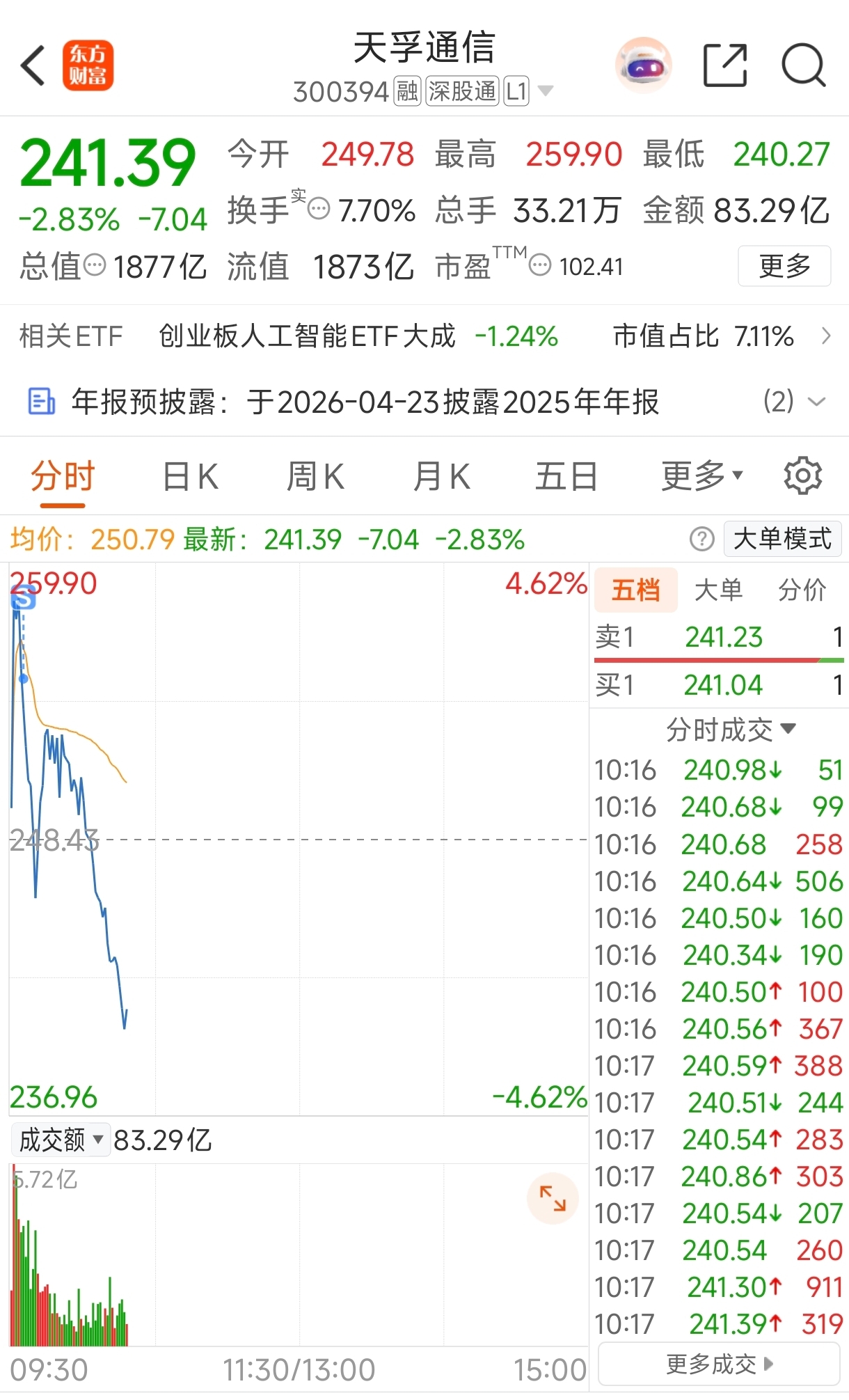 $天孚通信(SZ300394)$ 255走。下周再回来