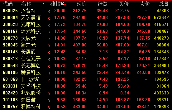 A股市场超4600股飘红,半导体板块拉升,芯原股份涨近15%,国芯科技涨近13%,复旦微电涨近10%;AI应用概念活跃,中文在线、海看股份20%涨停,海天瑞声等涨超10%;CPO概念强势,市值超2000亿元的天孚通信(300394)盘中涨停突破300元大关,续创历史新高;新易盛、中际旭创均走高;值得注意的是,中际旭创全日成交205.7亿元,位居A股成交额首位。分散染料概念亮眼,闰土股份、亚邦股份等涨停,浙江龙盛逼近涨停;太空光伏概念热度不减,杰普特20%涨停,协鑫集成斩获4连板。