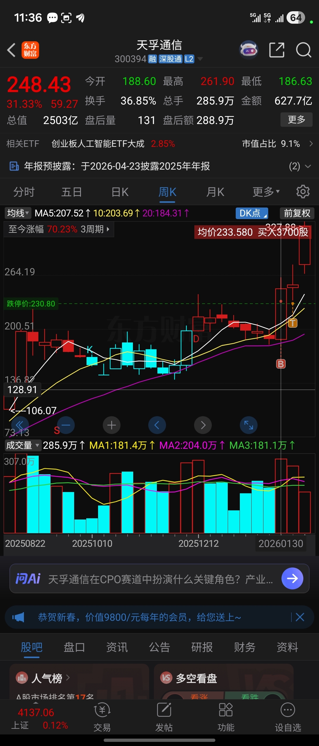 $天孚通信(SZ300394)$ 卖飞是常态,涨的离谱,涨的爽!