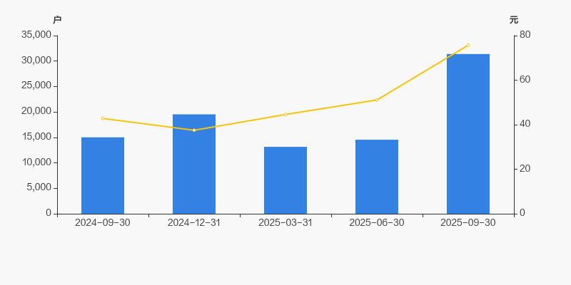 2024年9月30日至今,公司股东户数成倍增长,区间涨幅达109.03%。2024年9月30日至2025年9月30日区间股价上涨76.85%。