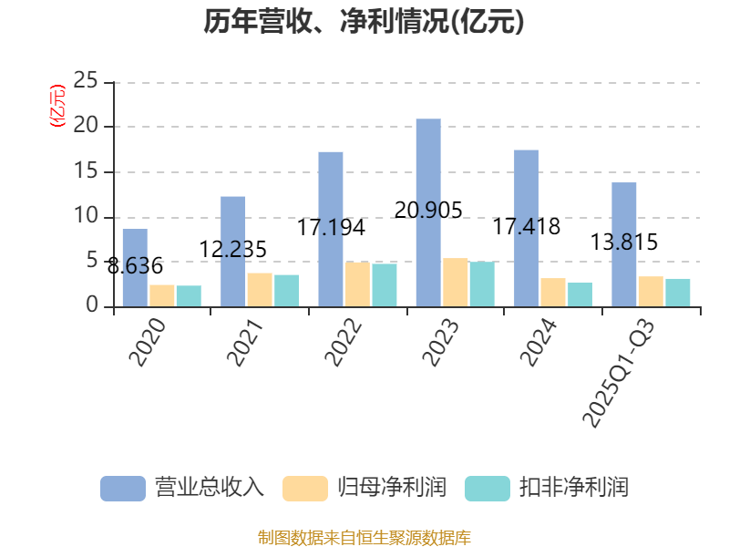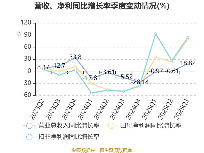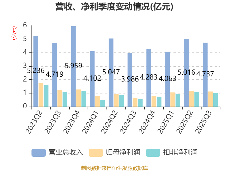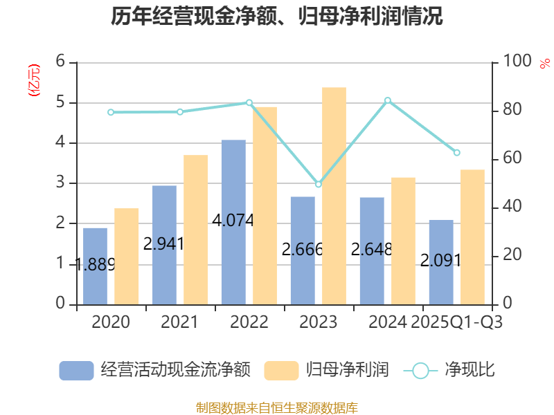 2025年前三季度,公司经营活动现金流净额为2.09亿元,同比增长52.8%;筹资活动现金流净额5.19亿元,同比增加3.65亿元;投资活动现金流净额-5.55亿元,上年同期为-2.77亿元。
