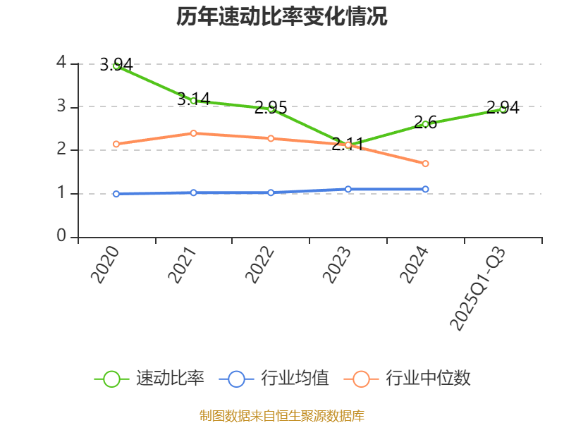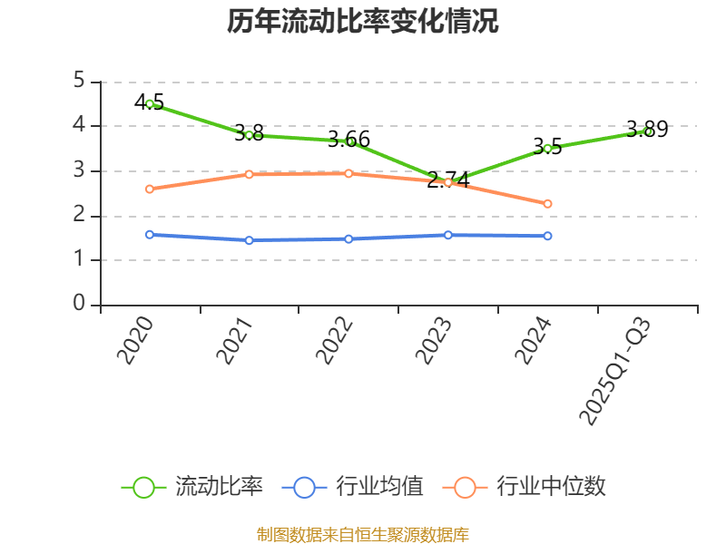 2025年前三季度,公司流动比率为3.89,速动比率为2.94。