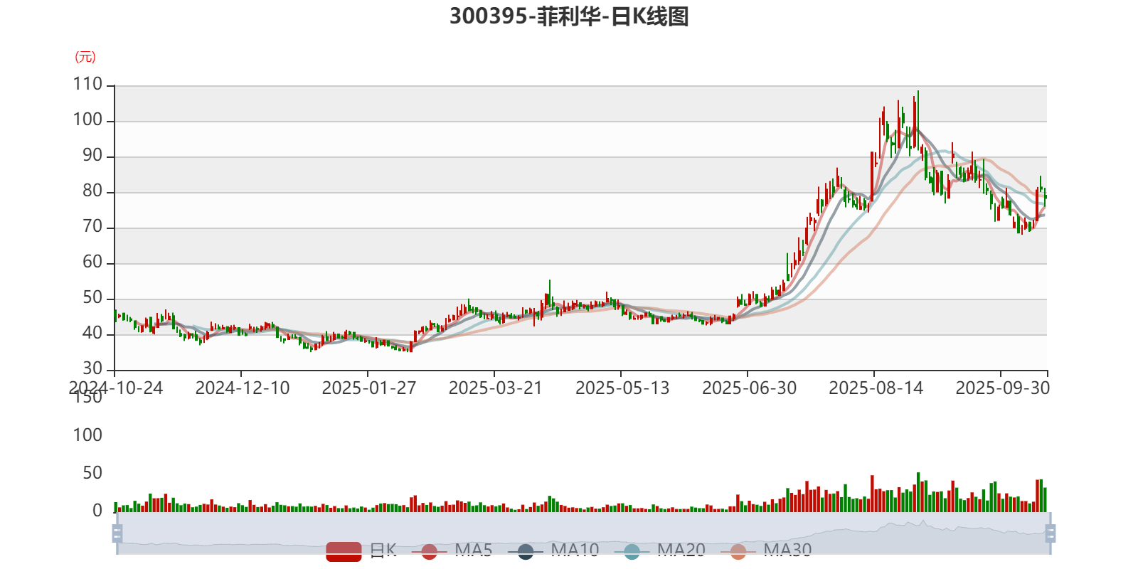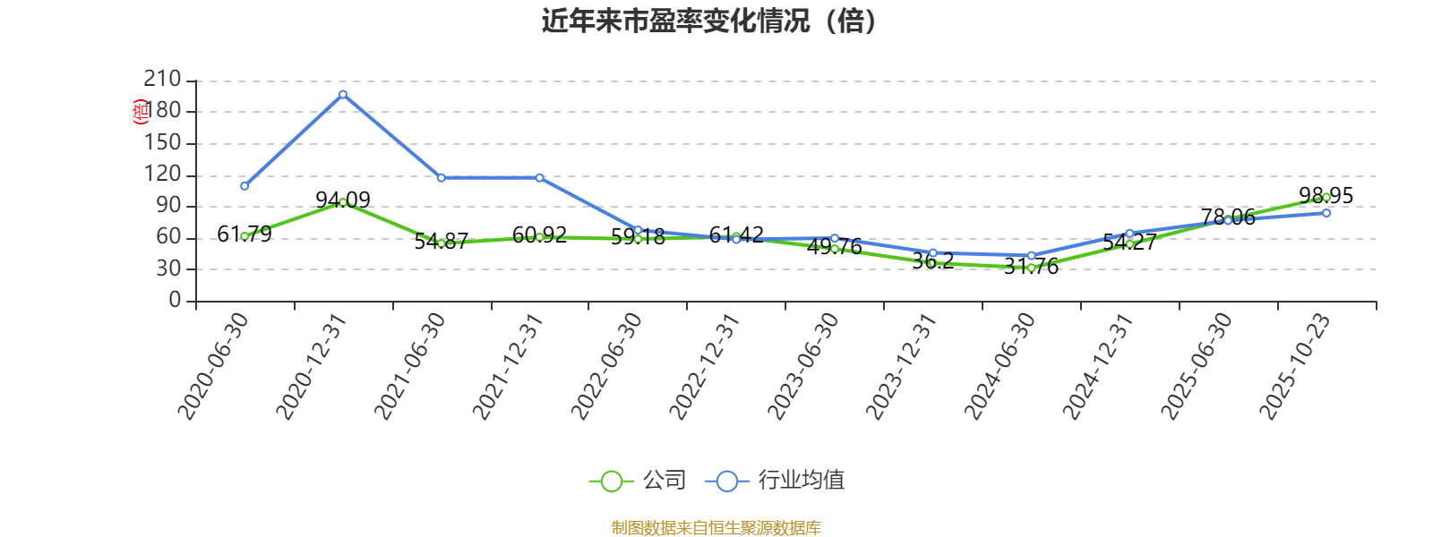 以10月23日收盘价计算,菲利华目前市盈率(TTM)约为98.95倍,市净率(LF)约8.99倍,市销率(TTM)约22.6倍。