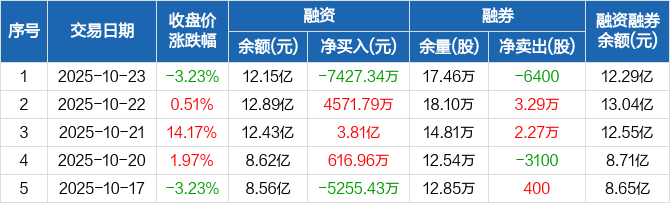 菲利华:融资净偿还7427.34万元,融资余额12.15亿元(10-23)