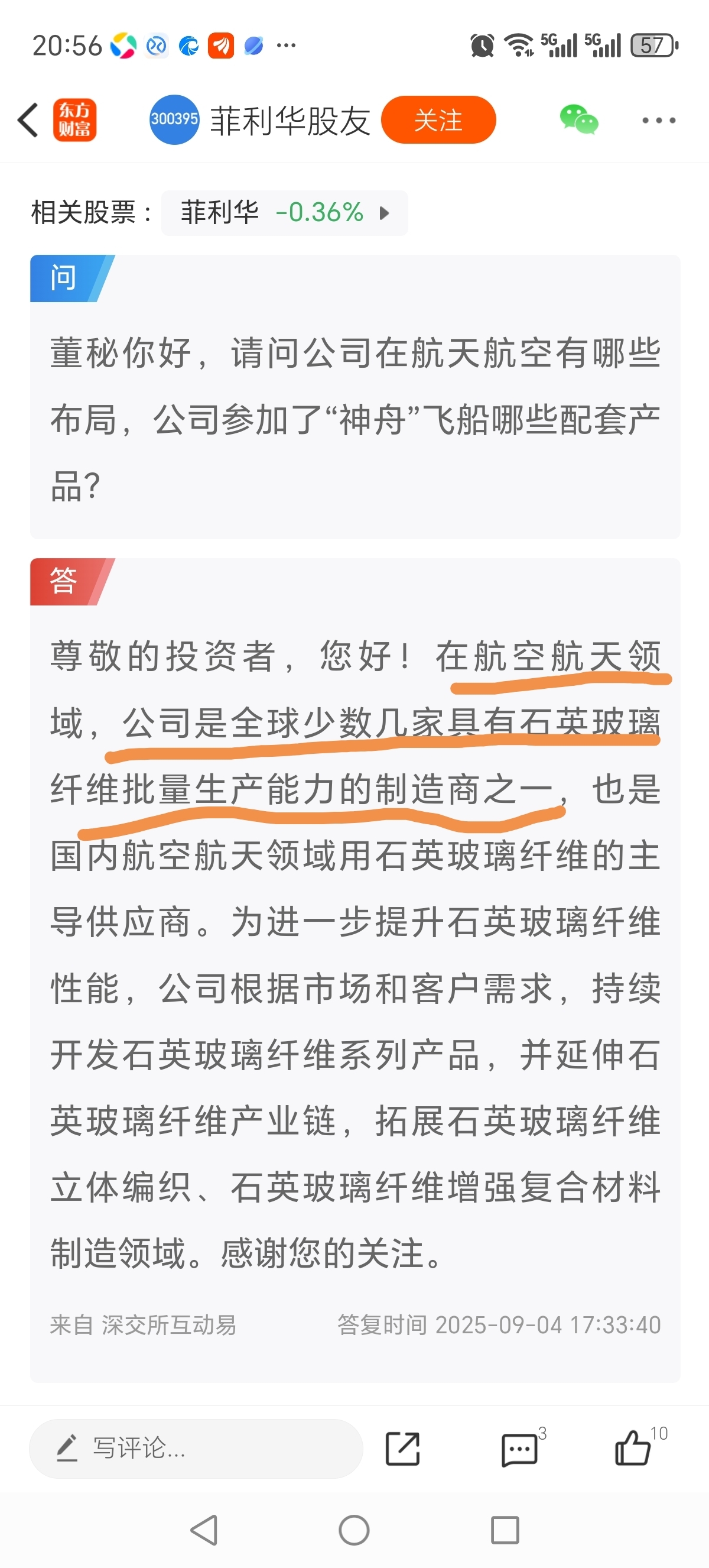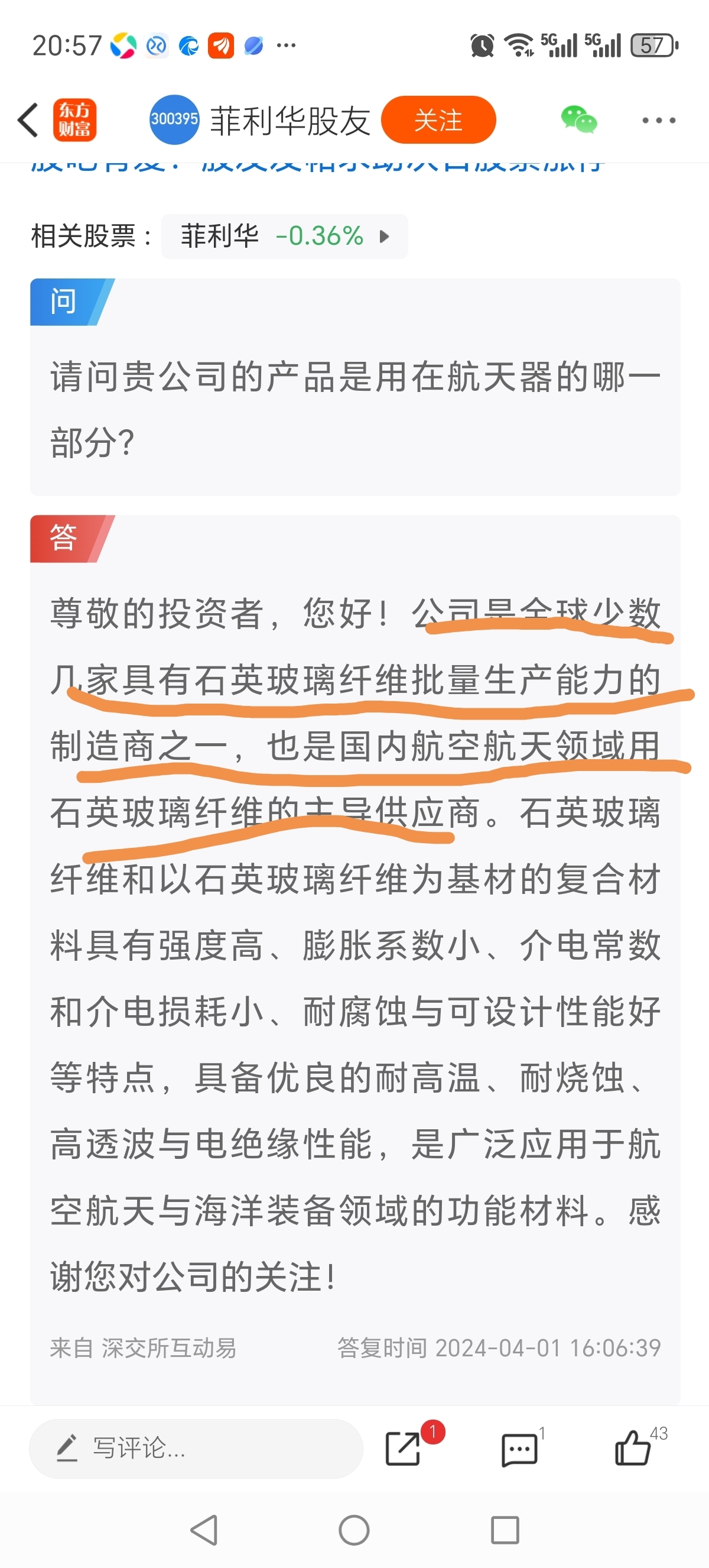$菲利华(SZ300395)$ 菲利华是国内唯一实现“石英砂提纯→石英纤维→石英布”全自主生产的企业:同时,公司也是国内唯一通过国际三大半导体设备商(东京电子、应用材料、泛林研发)认证的石英材料企业,全球仅5家获此认证。国内航空航天领域唯一军用石英纤维认证供应商,市占率超60%