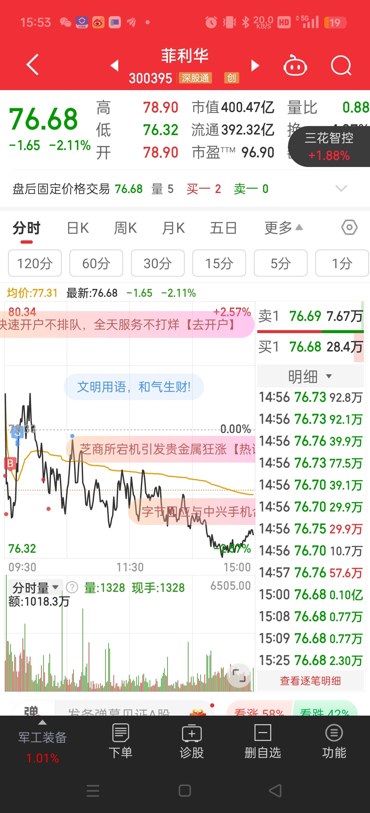 $菲利华(SZ300395)$ 量化我服你了,你是真能折腾