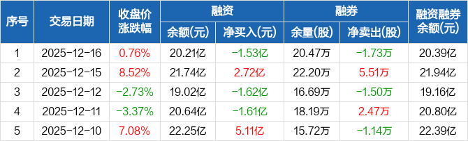 菲利华融资融券信息显示,2025年12月16日融资净偿还1.53亿元;融资余额20.21亿元,较前一日下降7.05%。