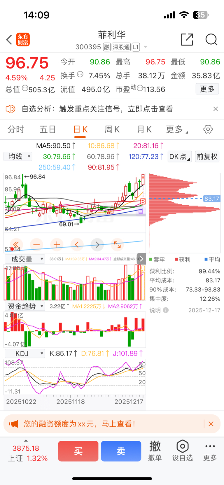 $菲利华(SZ300395)$ 96.84肯定会拿下