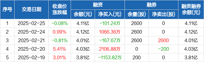 天和防务:融资净偿还101.24万元,融资余额4.11亿元(02-25)
