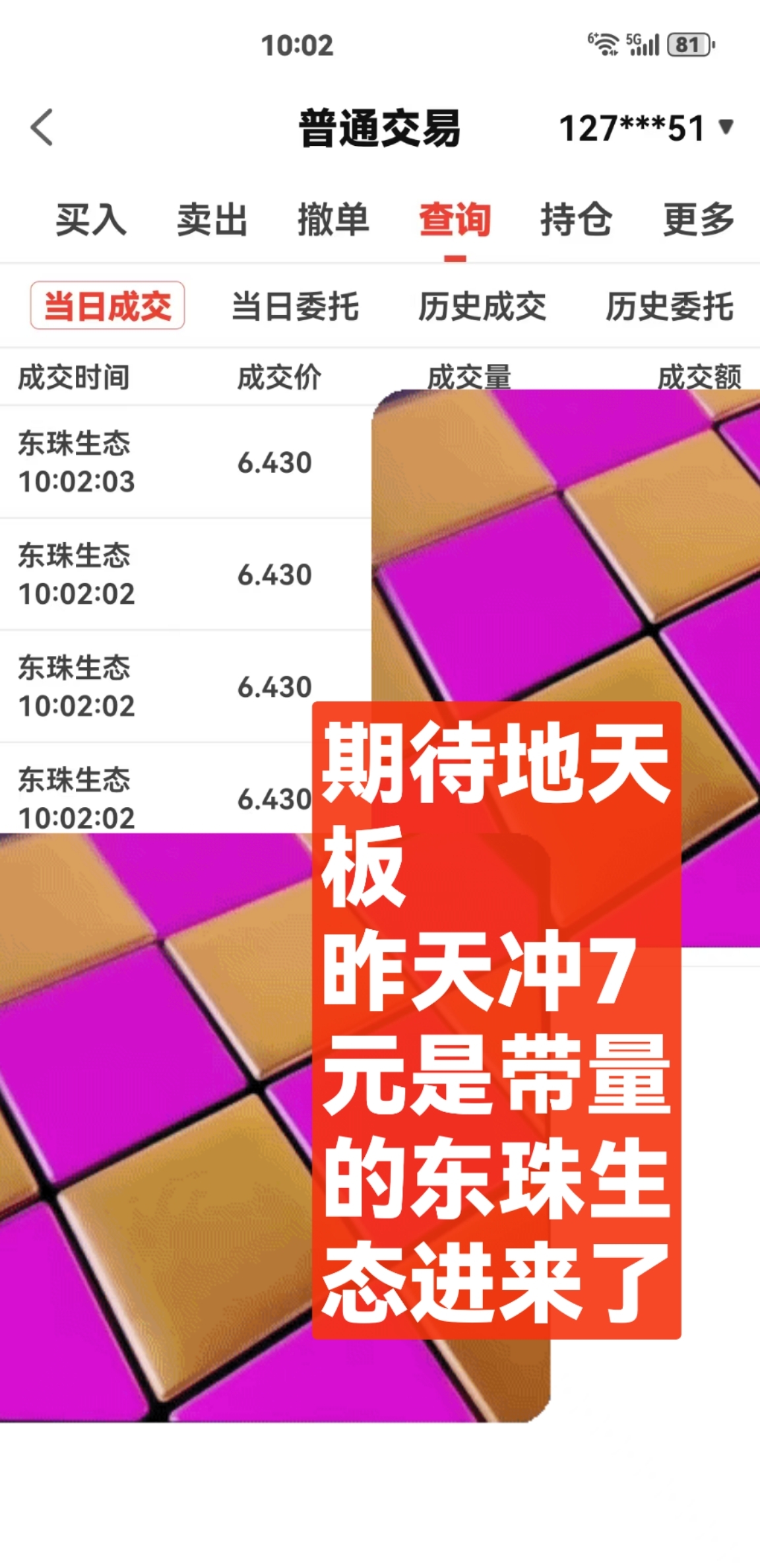 $东珠生态(SH603359)$ (置顶)东珠生态进来咯,鼎信通讯我挂7.09跑,跑成功换东珠生态,大盘不错,主力在8元吃了很多东珠生态筹码,干就得了,大不了跌停