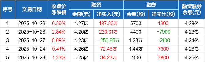 天和防务:融资净买入187.36万元,融资余额4.27亿元(10-29)