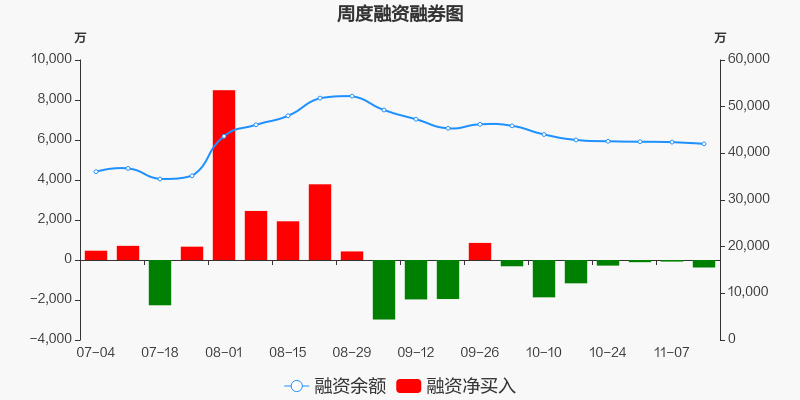 天和防务本周(2025/11/10-2025/11/14)累计跌幅达1.77%,截至11月14日最新股价报收12.23元。从增量上来看,11月10日至11月13日融资买入交易规模3777.79万元,融资偿还规模4153.12万元,期内融资净偿还375.33万元。从存量上来看,截止11月16日,天和防务融资融券余额4.2亿元,其中融资余额规模4.2亿元,融券余额规模16.1万元。