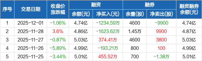 天和防务:融资净偿还1234.59万元,融资余额4.74亿元(12-01)