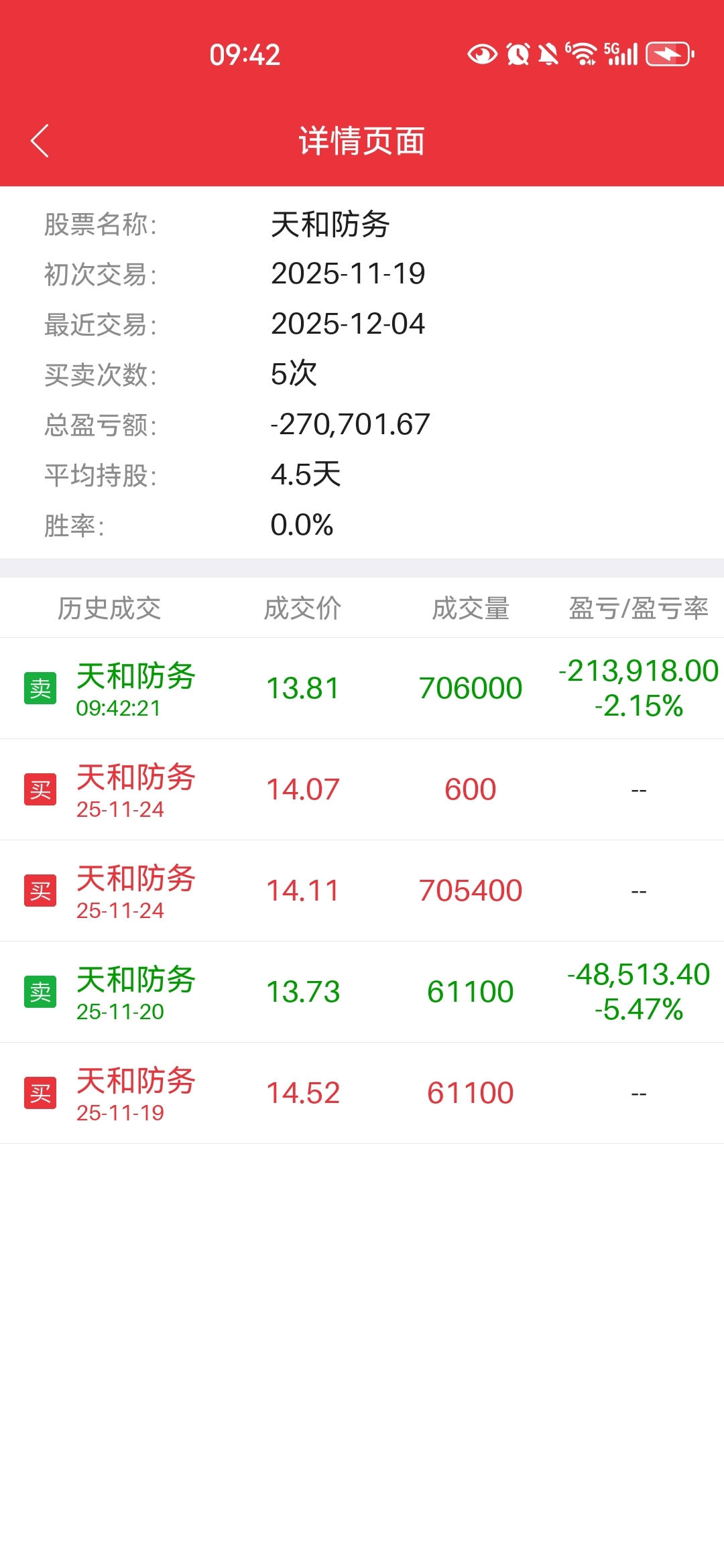 $天和防务(SZ300397)$ 自杀式下跌,再见吧,你也不是好货,割肉走了,2进2出,拉黑