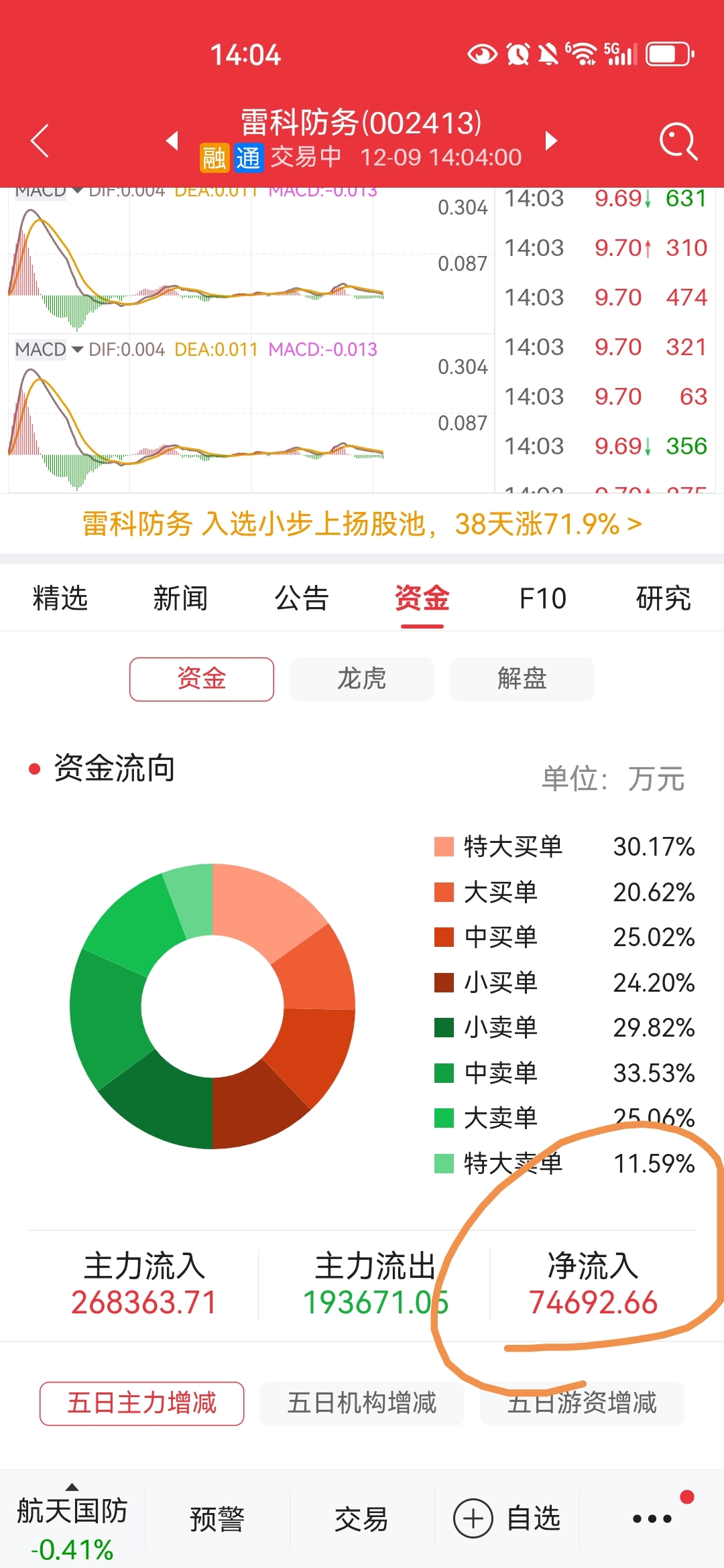 $天和防务(SZ300397)$ 雷科防务净流入7个多亿了,真强