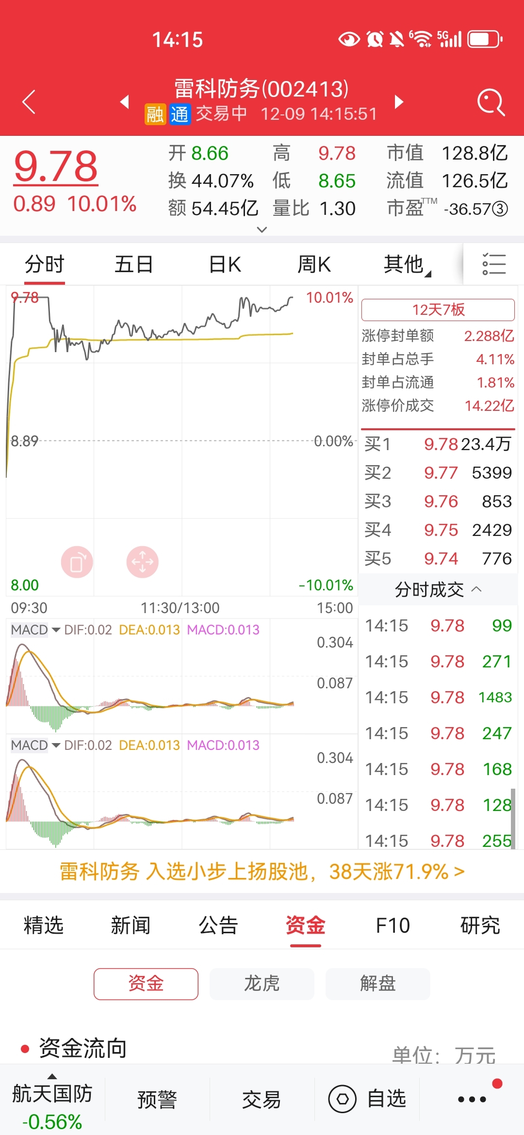 $天和防务(SZ300397)$ 扎心不,雷科防务又封板了