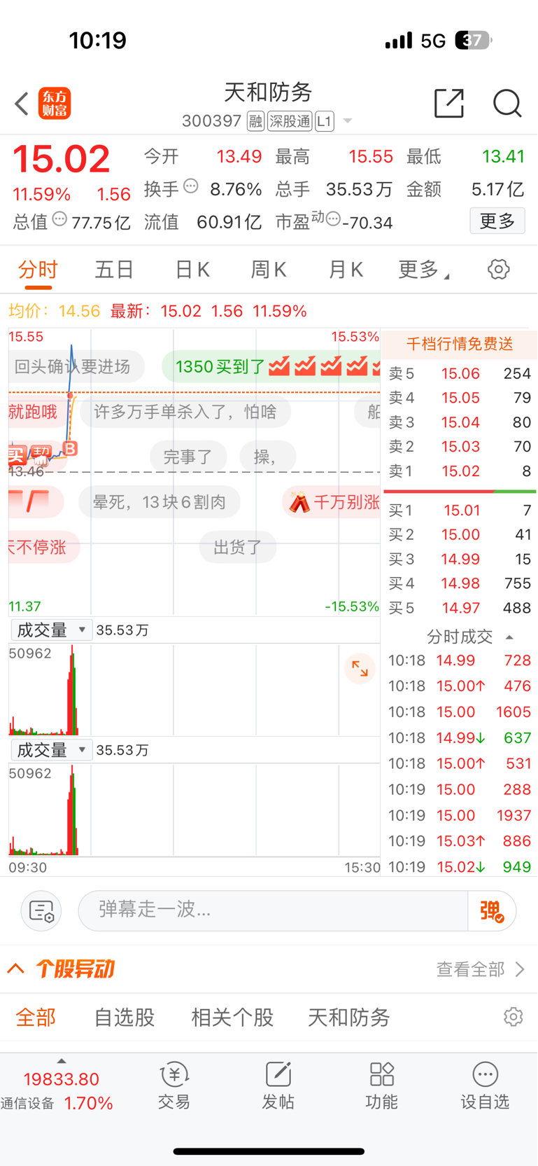 $天和防务(SZ300397)$ 大哥加油,别套我
