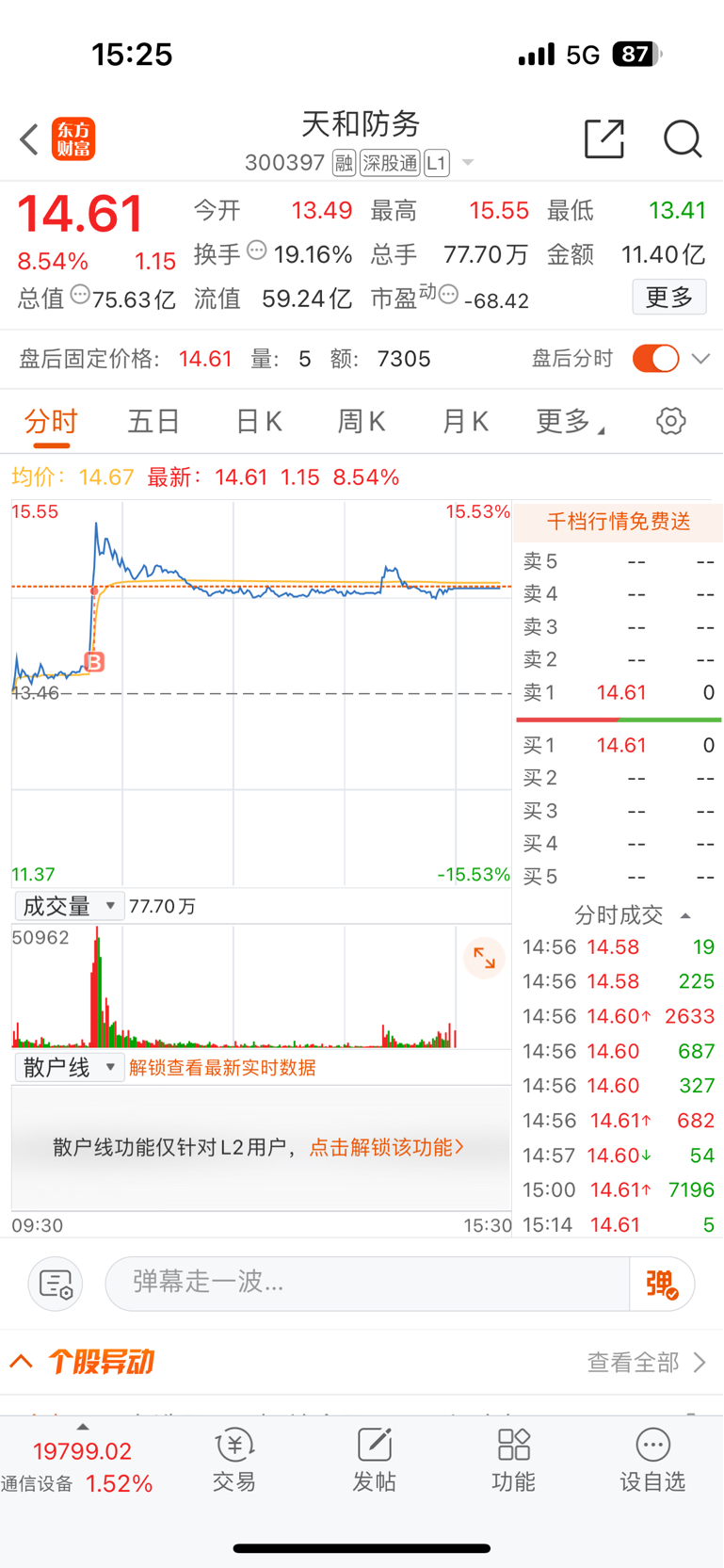 $天和防务(SZ300397)$ 大哥挺给面子,打在我成本线上