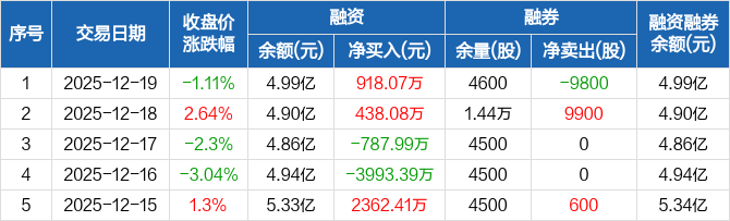 天和防务:融资净买入918.07万元,融资余额4.99亿元(12-19)