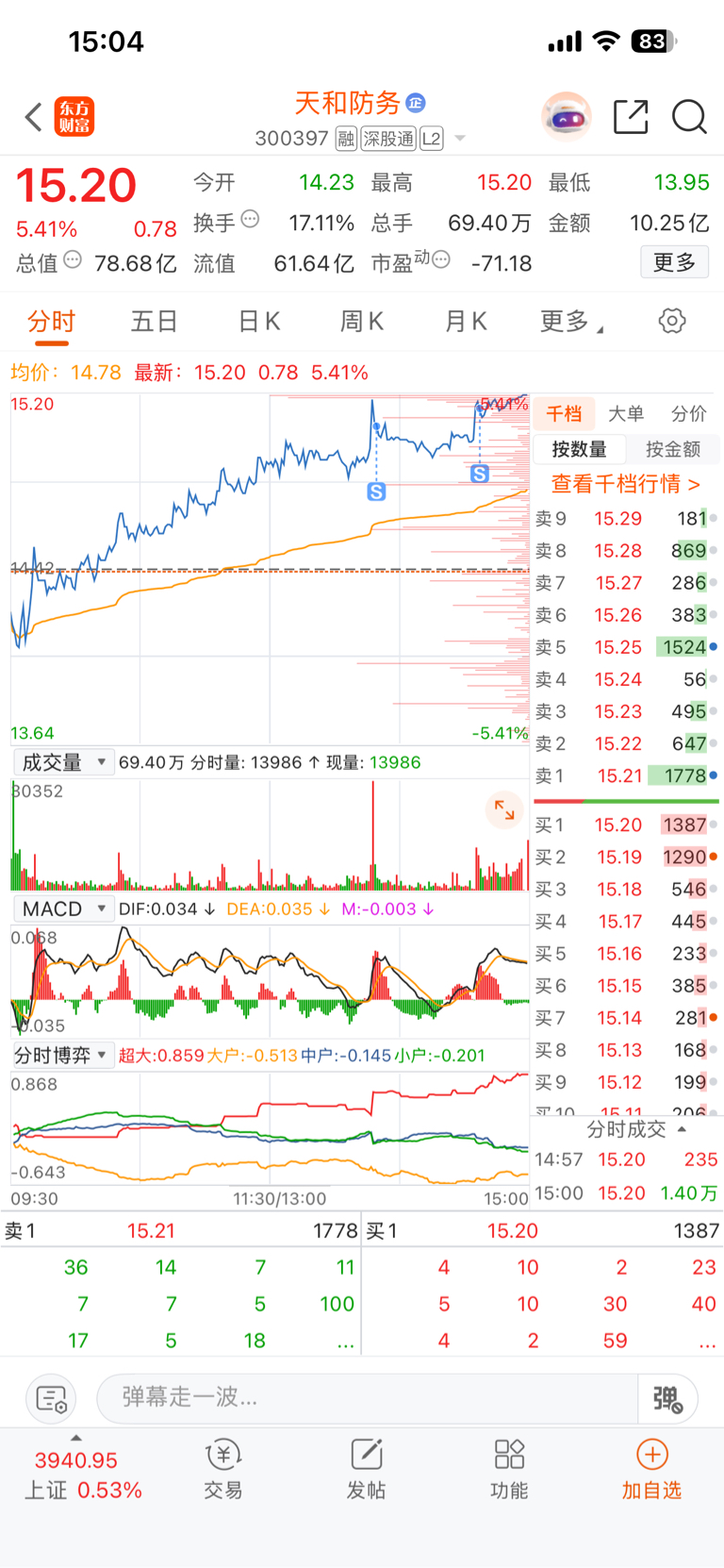 $天和防务(SZ300397)$ 先卖半仓,落袋为安