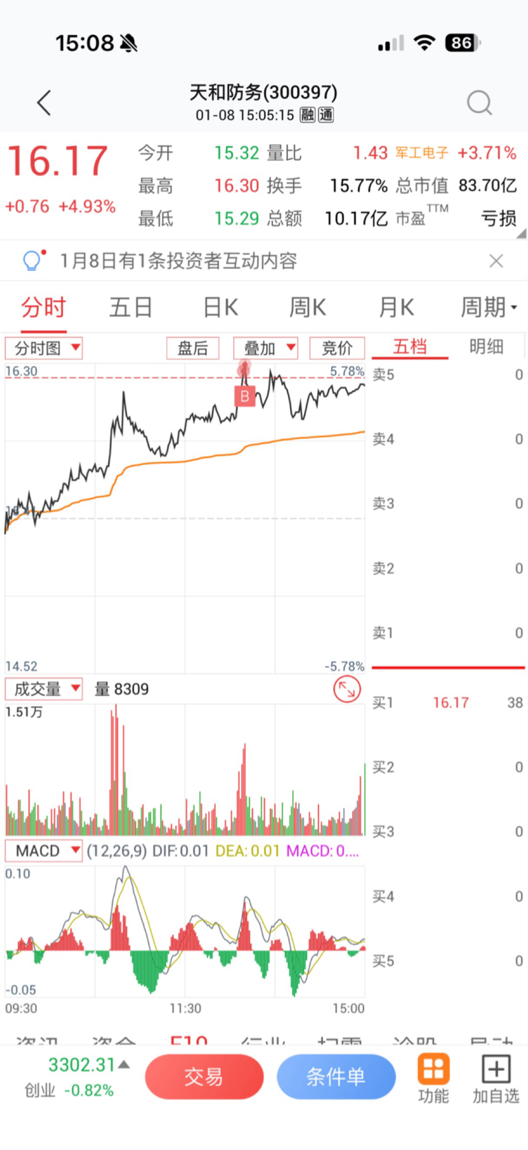 $天和防务(SZ300397)$ 这票我进了,坐稳扶好吧