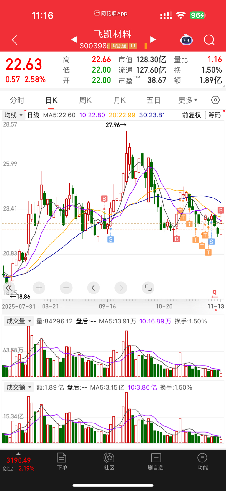 想在飞凯材料里赚钱也是有点难,太墨迹