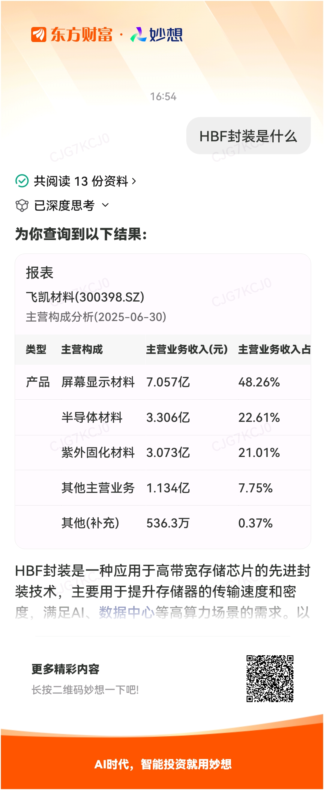 #@妙想,你怎么看?# 妙想一下:HBF封装是什么。飞凯材料全方位布局储存芯片显影液蚀刻液塑封材料等$飞凯材料(SZ300398)$