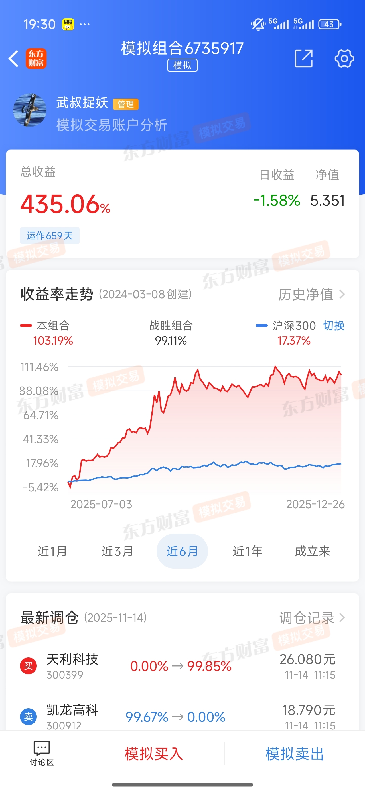 2025年就几个交易日了。马上就收官了。近两年整体还是不错的。收益率已经过了百分之460了。等天利科技下周来止盈。2025就完美收官了。我的组合跟实盘是同步的。大家可关注,就知道了。我是实战派。很少来这里发贴子,专注交易。交易是孤独的。在这里发贴子,不是炫耀。只为记录心得。关注我,实盘同步模拟,希望大家2025年都能完美收官!2026年再接再厉!