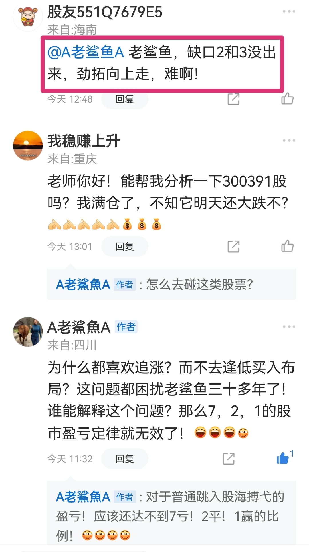 哪有啥子缺口2和3哦!仍然按计划逢低买入为主遭了活该!老鲨鱼坚持自己的打法!