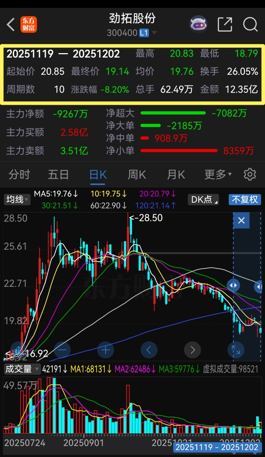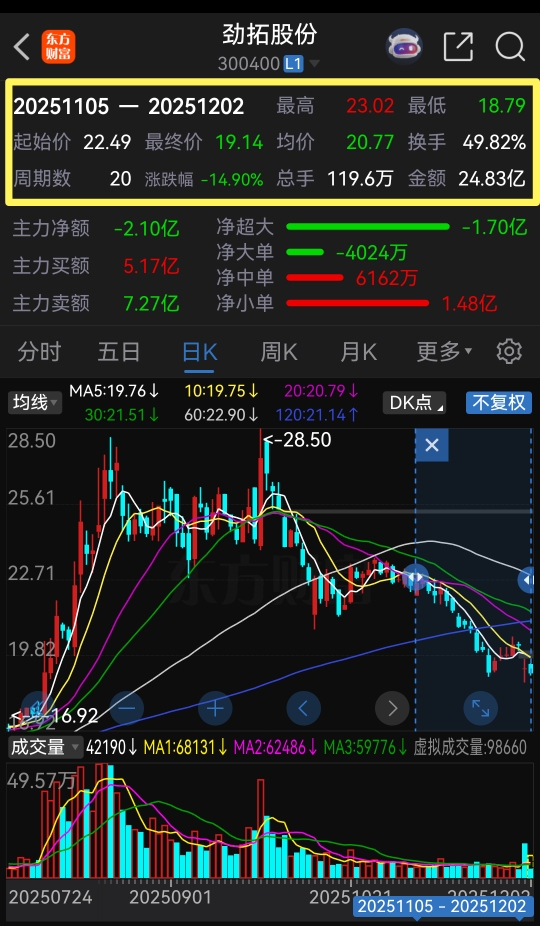 老鲨鱼历来都不怕遭!也遭不怕!把昨天抄底万科的纯利润,用来买些低价的劲拓!