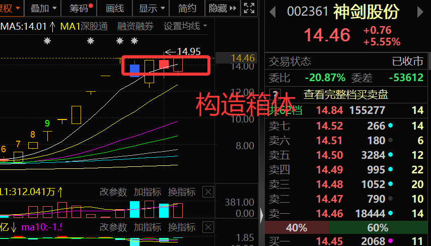 神剑是航天材料碳纤维逻辑,神剑昨天整体来说没有指数强势,但这很正常,毕竟前期涨太多了,歇一歇,大家看前期的龙头航天发展,乾照光电今天都跑输了指数,但是昨天的分时图明显有资金低吸,今天低开后很快就有资金捞起来,如果会做t的话,今天日内也有7个点的利润,目前这个箱体就快要突破了,继续新高。