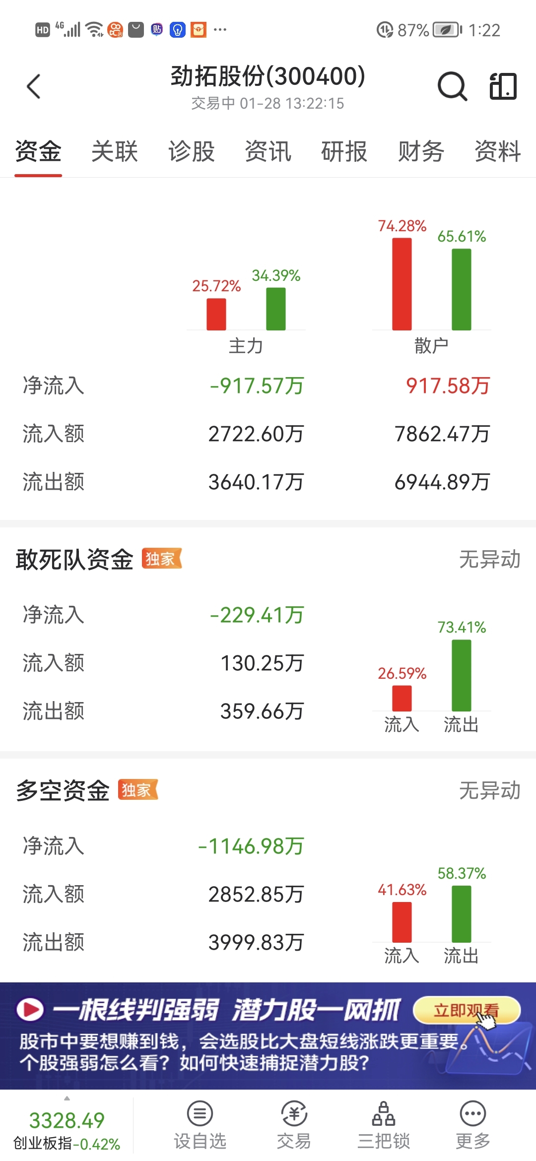 $劲拓股份(SZ300400)$ 小散都很牛逼,这种破位没抵抗力的情况下,居然越跌越买,大半天都是主力砸,散户接盘,尾市若没能收回10日均线上方,本人会毫不犹豫减仓。