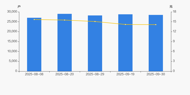 2025年8月8日至今,公司股东户数有所增长,区间涨幅为5.31%。2025年8月8日至2025年9月30日区间股价下降9.94%。