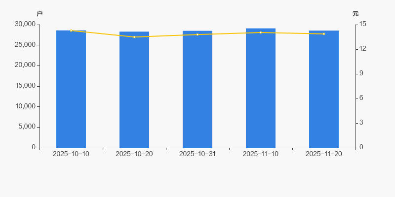 2025年10月10日至今,公司股东户数有所下降,区间跌幅为0.16%。2025年10月10日至2025年11月20日区间股价下降2.87%。