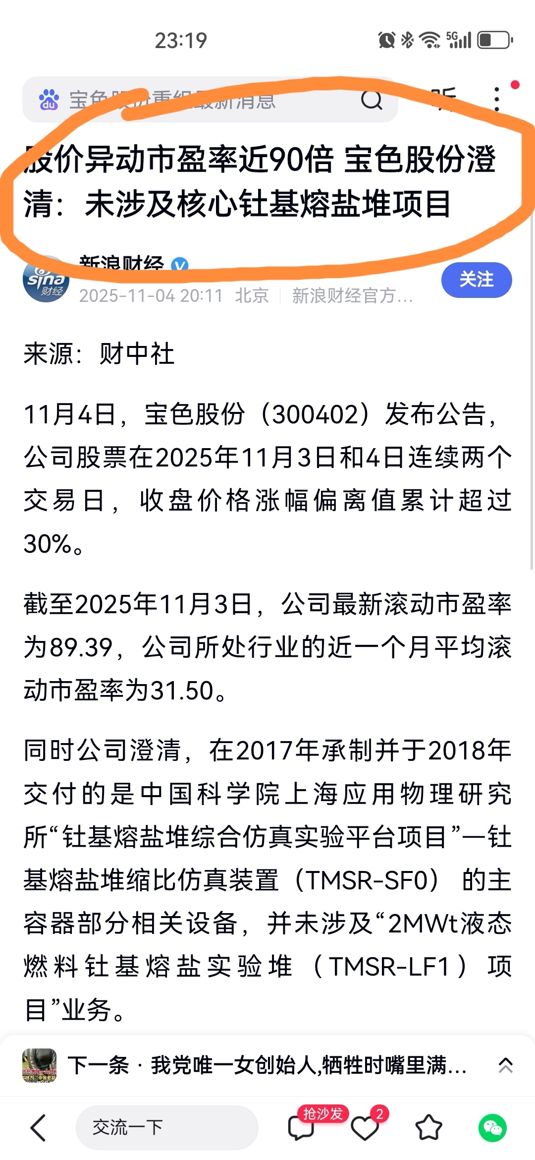 宝色股份澄清:未涉及核心钍基熔盐堆项目